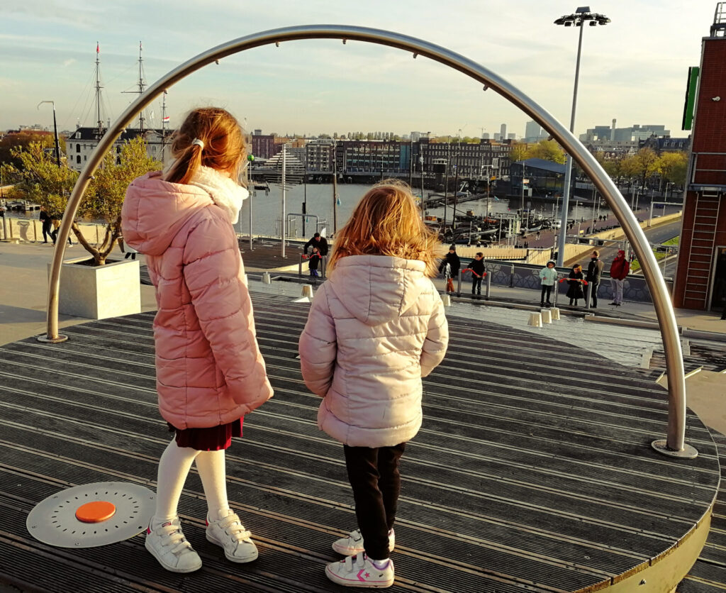 Le petit bonus sensations fortes : Juste à côté du musée EYE se dresse la tour A’DAM Lookout. L’accès à la plateforme est payant, mais la vue à 360° est époustouflante. C’est ici aussi que se trouve la plus haute balançoire d’Europe. Si tu veux te balancer au-dessus du vide, compte 10,50 € par enfant, 16,50 € par adulte, supplément de 7,50 € pour accéder à la balançoire.