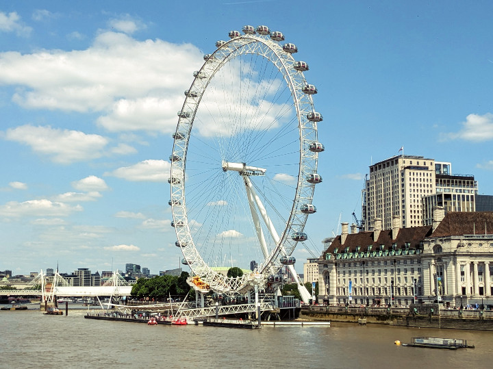 Sur la rive sud de la Tamise se dresse le London Eye, une grande roue de 135 mètres de haut très prisée des touristes, même si elle m’a un peu déçue lors de ma première visite à Londres. Le prix du billet varie de £29 à £59 pour un adulte, ce que je trouve excessif pour l’expérience proposée.