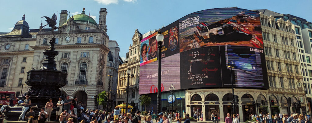C’est une place qui ne dort jamais ! Avec ses écrans géants lumineux, ses bus rouges à impériale, ses théâtres et son agitation permanente, elle a un tout petit air de Times Square à la londonienne.