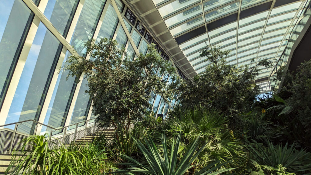 Ce jardin suspendu dans une grande serre vitrée se trouve au sommet du célèbre Talkie-Walkie.