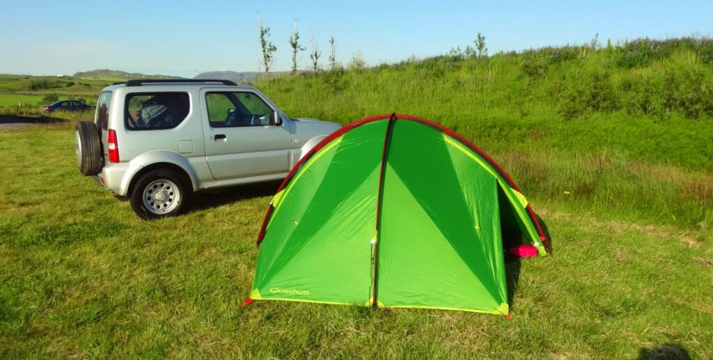- Au printemps et en été : l’option camping. C’est ce que nous avons fait et je te le recommande pour réduire le budget. Pour trouver tous les campings du pays et vérifier leurs équipements (w.c., électricité et surtout la présence ou non de douches), consulte le site Tjalda.is.