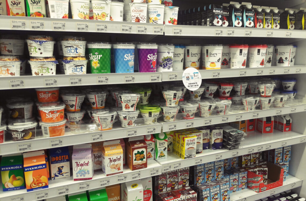 - Skyr, sorte de yaourt très épais et riche en protéines, emblématique du pays, mais qu’on trouve partout en France.