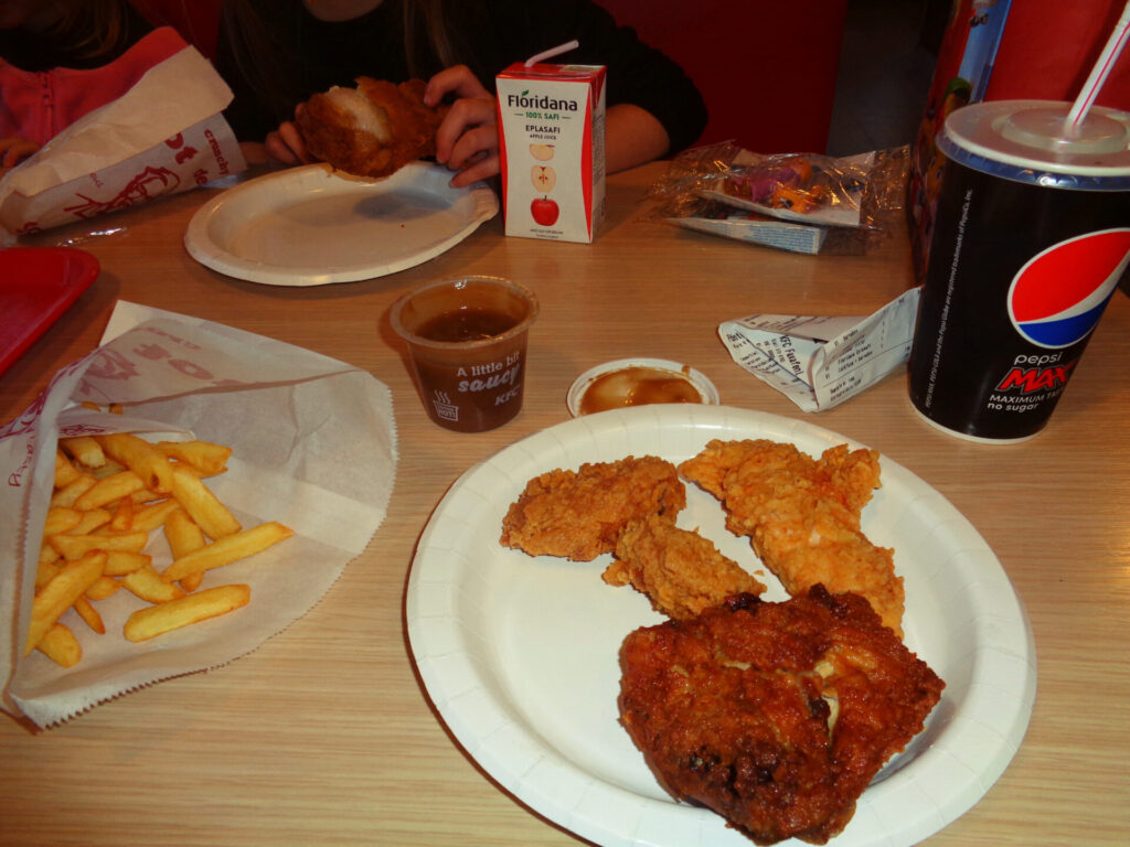 Après quelques spécialités qu’on n’a pas trop aimées, on a fini par se rabattre sur un burger-frites. C’était le seul bon repas de la semaine et aussi le plus cher de notre vie !