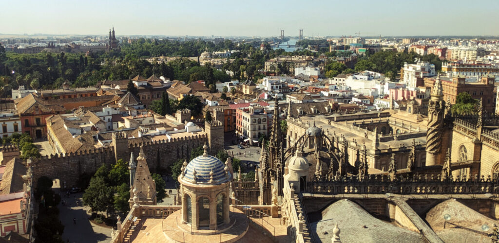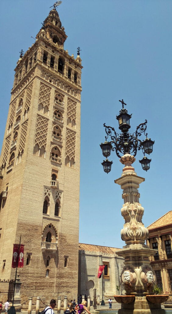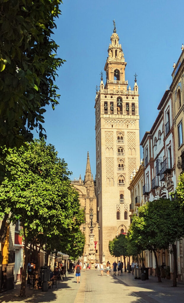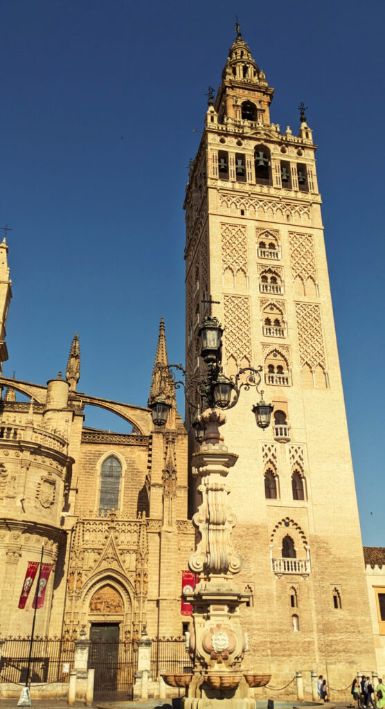 Son clocher, la Giralda, ancien minaret reconverti, se gravit par une rampe douce, offrant en haut une vue spectaculaire sur toute la ville.